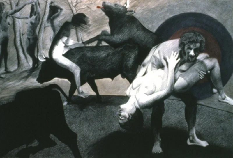 Rape of Europa, 1984, 44" x 64", oil and graphite on paper